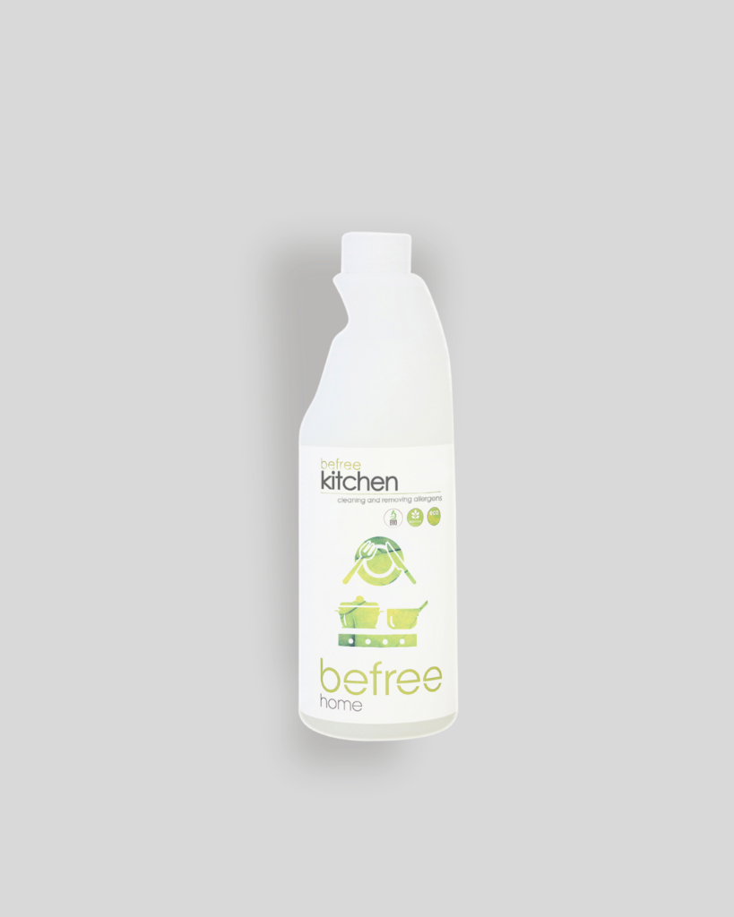 KITCHEN de BeFree Home est un détergent biologique multiusage pour vaisselle, ustensiles et surfaces de cuisine. Sa formule enzymatique est spécialement conçue pour éliminer les résidus alimentaires et les allergènes, garantissant un nettoyage profond et sûr pour toute la famille.